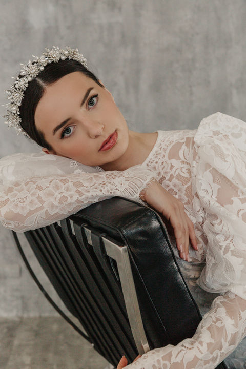 Discover LANUEDOC, where balance and proportion are essential elements to create a perfect headpiece. Exquisitely designed for the discerning bride, Swarovski crystal leaves encircle delicate pearl cabochon-encrusted flowers, epitomizing elegance and precision. Each piece from Halo and Co reflects our commitment to couture craftsmanship, ensuring you shine with unparalleled sophistication on your special day. Elevate your bridal ensemble with a touch of timeless artistry, meticulously handcrafted for those who seek nothing but the best.